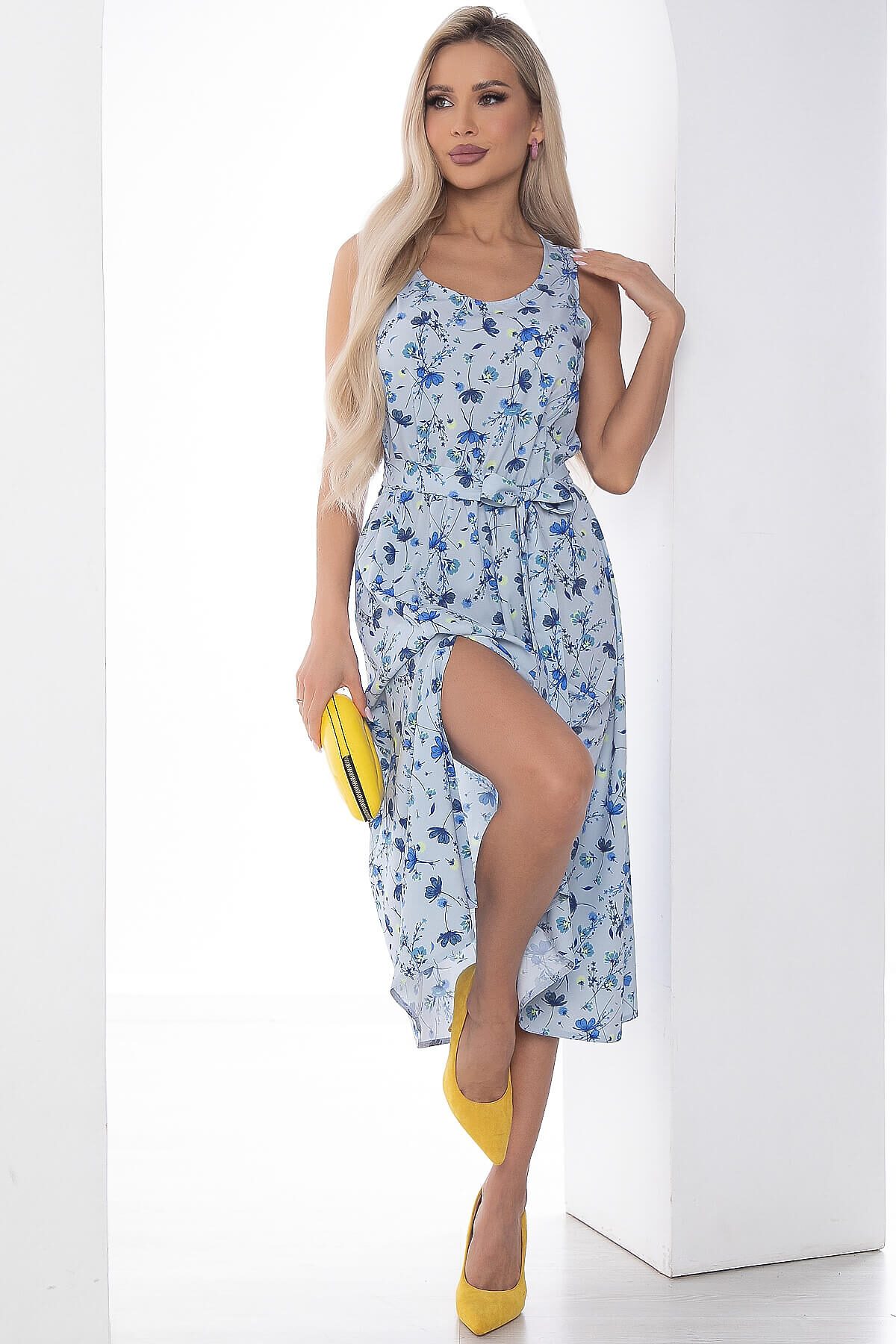 Вы точно полюбите это легкое и воздушное платье-сарафан! Оно точно подойдет на любой случай. Платье отлично будет смотреться как с кедами, так и с каблучком. В комплект входит пояс из основной ткани. Изделие по низу украшает элегантный разрез, что придает образу кокетства.