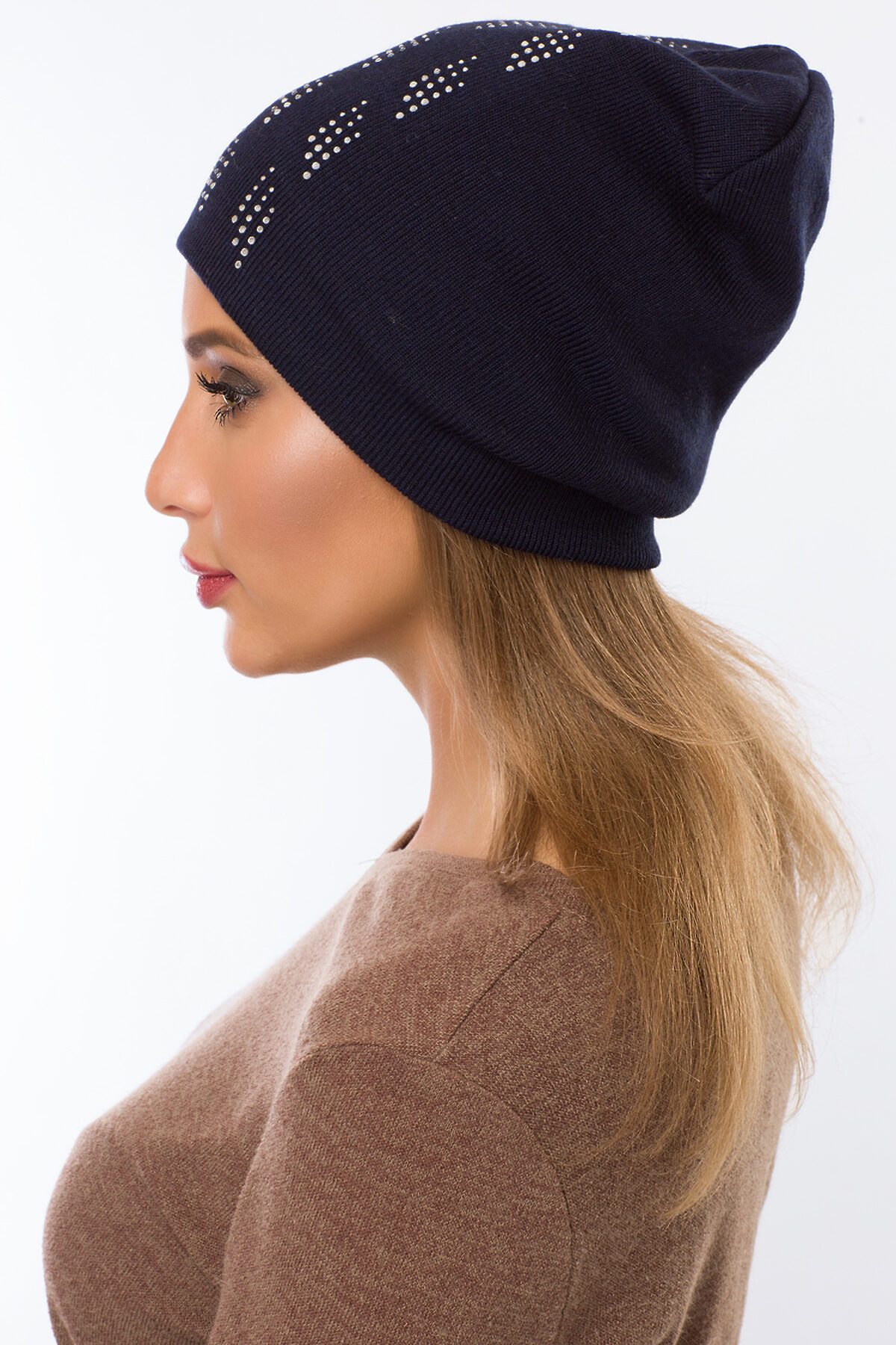 Удлиненная шапка со стразами, выполненная из шерсти и пана.